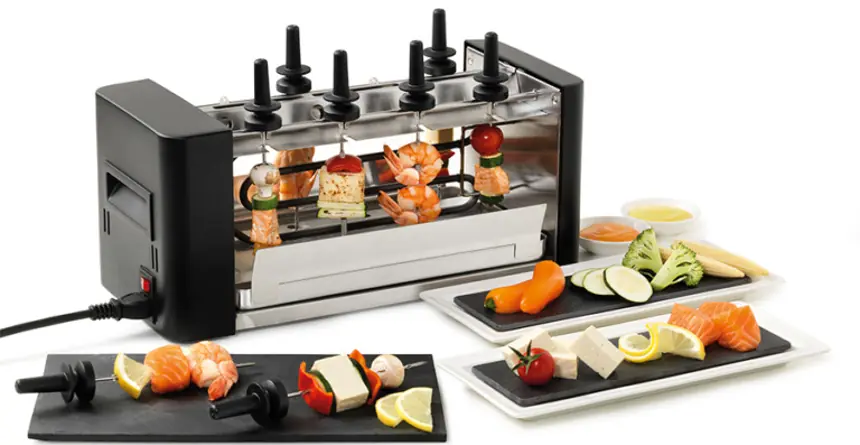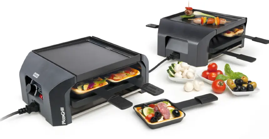Wir führen multifunktionale Tischgrills, mit denen Sie zahlreiche Gerichte zubereiten können. Dank der Gestaltung erzeugen Sie eine optimale Oberhitze und damit die Voraussetzung für kleine Pizzen. Alternativ eignen sich die Pfannen durch ihre Beschichtung und Form für Raclettekäse. Auf den Grillplatten braten Sie die verschiedenen Zutaten.