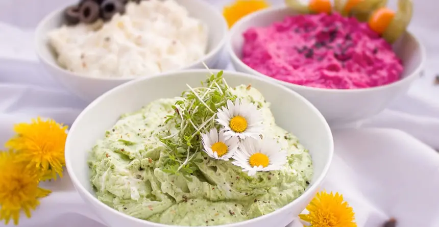 Besonders exotisch wird es mit einem asiatischen Erdnuss-Koriander-Dip. Dazu vermengen Sie Erdnussbutter und Kokosmilch mit etwas Naturjogurt. Hinzu kommen gehackter Koriander, Zitronensaft sowie Salz und Pfeffer.