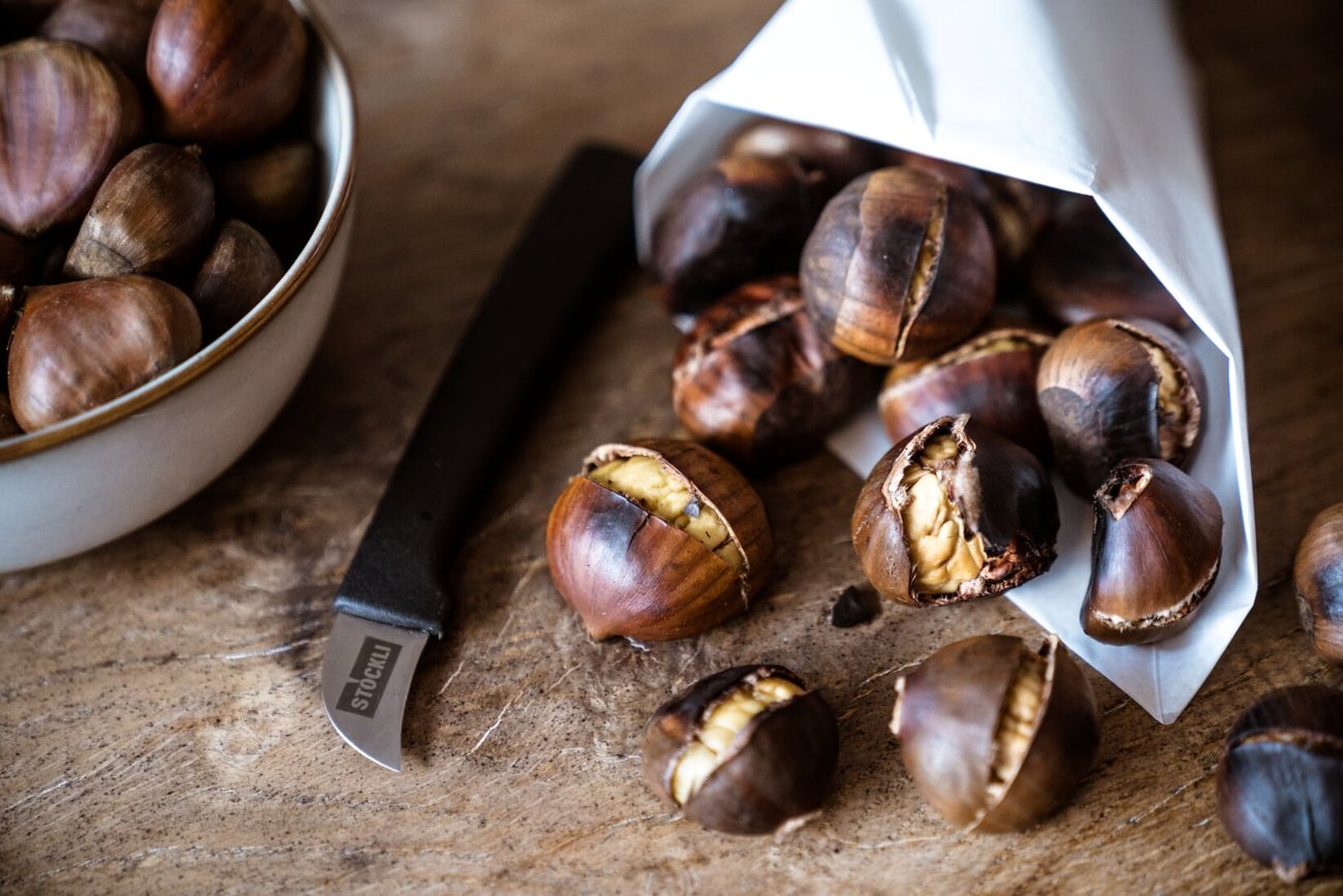 Start with a careful cut that opens the chestnut shell just enough to allow steam to escape during roasting. With the special Stockli chestnut knife, which you can find in our shop, this important step is made easy and ensures even cooking without the chestnuts bursting.
