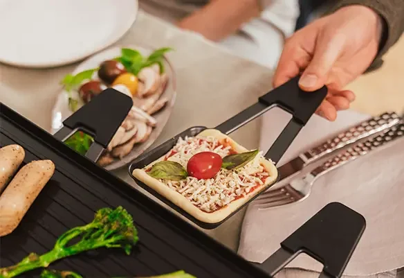 Thanks to the adjustable top heat, raclette and pizzas are always a delight.