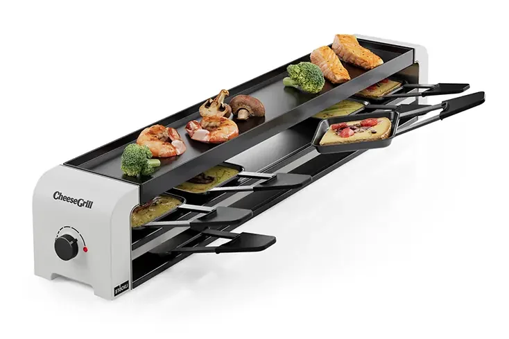 Entdecken Sie unsere vielfältige Auswahl an Raclettegeräten, die mit modernem Design und verbesserten Funktionen entwickelt wurden. Egal, ob Sie unsere neuesten CheeseGrills oder bewährten Modelle wählen – jedes Gerät bereichert Ihre gemeinsame Zeit und verwandelt das Zubereiten köstlicher Gerichte in ein freudiges Erlebnis. Unsere Raclettegeräte sind ideal für jeden Anlass und jede Generation, um die schönsten Augenblicke beim gemeinsamen Essen zu geniessen.