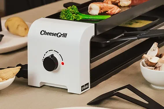 Entdecken Sie die Evolution des Raclette-Genusses mit den innovativen Geräten von Stöckli. Als Pioniere des Portionenracletteofens vereinen wir jahrzehntelange Erfahrung mit frischen Designs und technischen Neuerungen. Unsere Raclettegeräte der neuen CheeseGrill-Serie sind in den attraktiven Farben Black, Ivory Gold, White, Mint Green und Merlot Red erhältlich, und bieten das perfekte Format für jede Tischgrösse. Erleben Sie, wie unsere Geräte jede Mahlzeit zu einem besonderen, gemeinschaftlichen Ereignis machen.